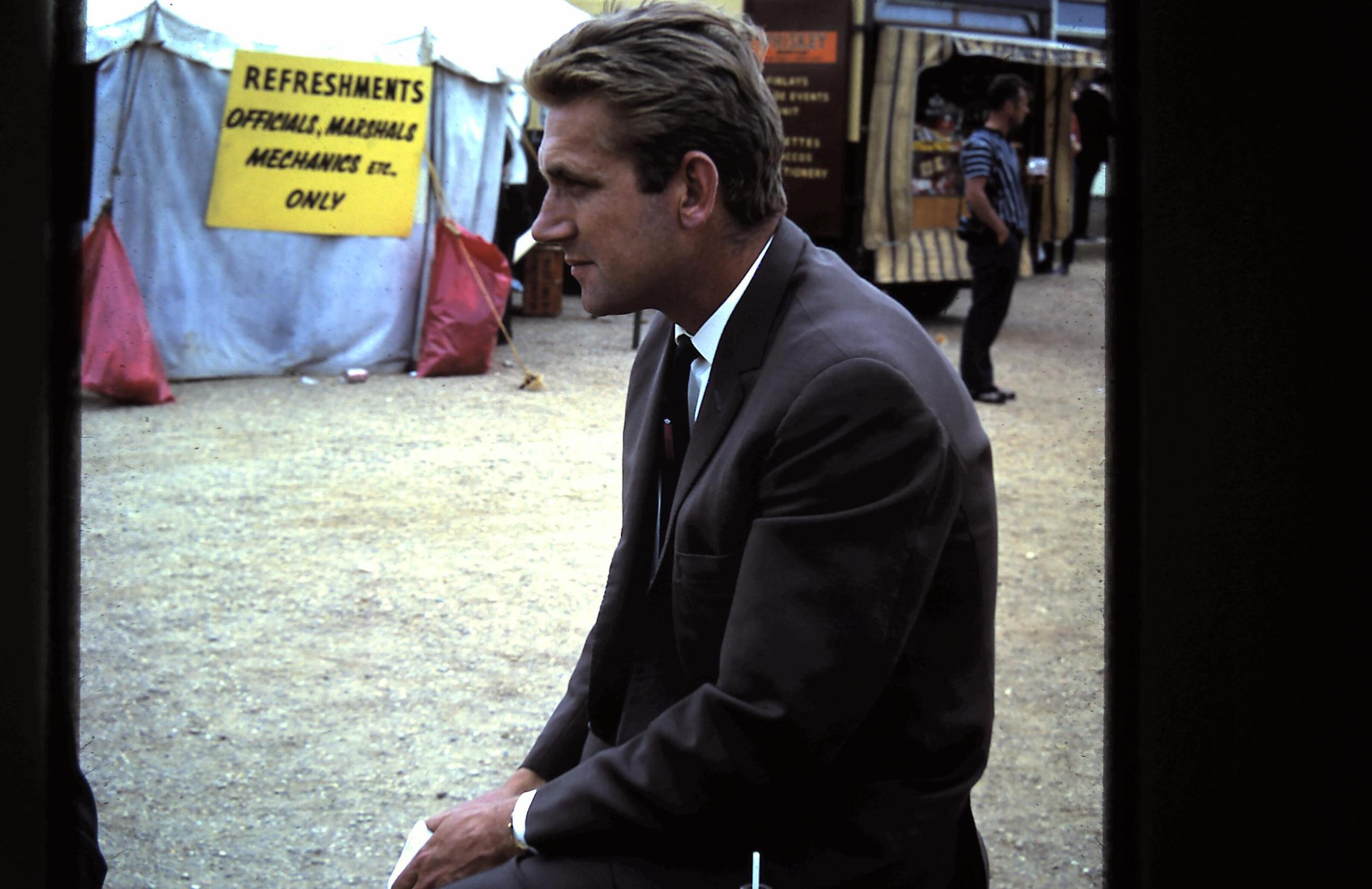 The picture I show here was taken in 1969 at the British GP by a great admirer of Alan’s. Geoff Sykes, the Warwick Farm Tasman promoter, was in the UK to sign-up drivers for the upcoming Australian summer leg of the series. I’ll never forget his words, upon his return to Sydney, as he described this shot of a contemplative Alan Mann in one of his regular “slide shows”: ” Outstanding car preparation and presentation. Knows what he’s talking about. Knows his helicopters, too! A gentleman.”