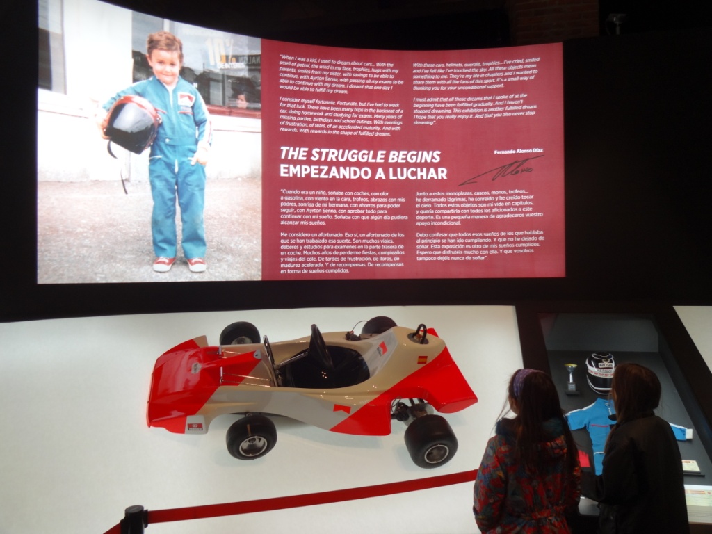 I love the new Fernando Alonso exhibition currently showing in Madrid. It’s far-reaching but it’s a story neatly told – a bit like the man himself. Nor is there any kind of angle. No hard sell, no gimmicks. Just a minimalist display of his career to date, from karts to Ferraris via Minardi, Renault and McLaren. And helmets and messages from other racing drivers. The common theme of men like Lewis and Mark? “We loved/love racing against you, Fernando…”