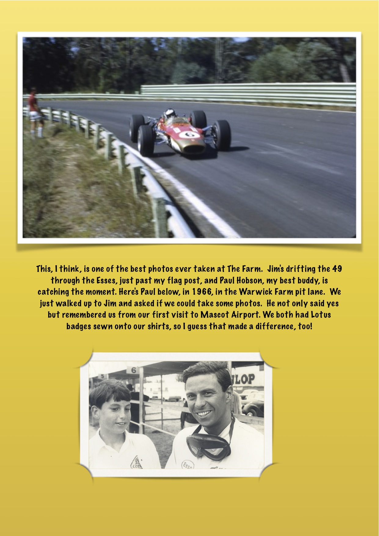 Thanks again Peter for memories of my hero Jim Clark. The picture of your buddy Paul with Jim, reminds me of the time I asked Jim for he’s autograph in the paddock at Crystal Palace. After happily signing my program, he returned it to me and looking straight into my eyes, he said ‘thank you’ A true gentleman. That autograph is now proudly hanging on my lounge wall at home .