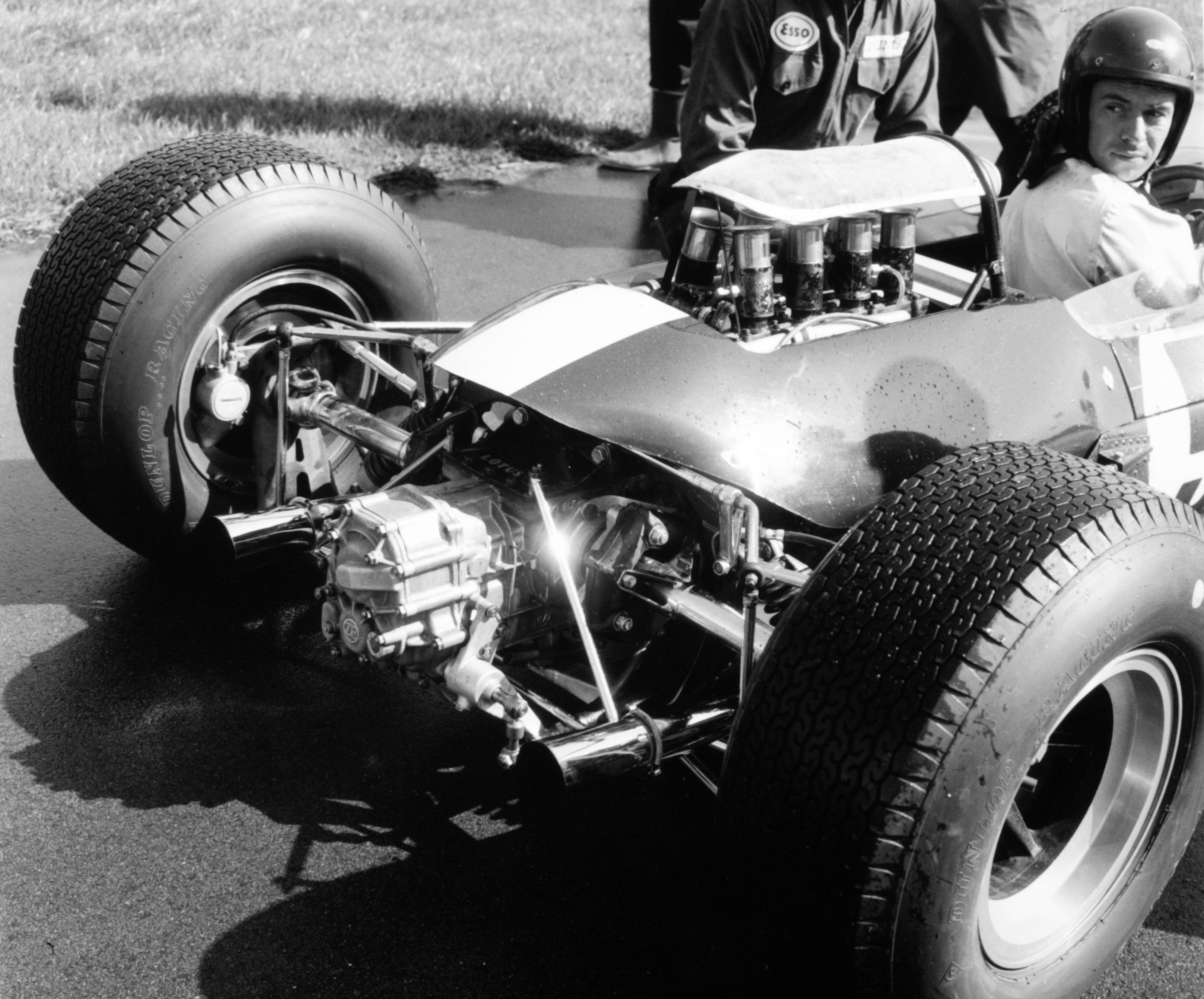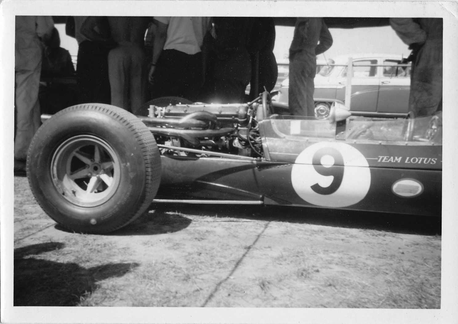 Jim looks back at the new four-valve Climax V8 fitted to his Lotus 33. Note new Dunlop R7s