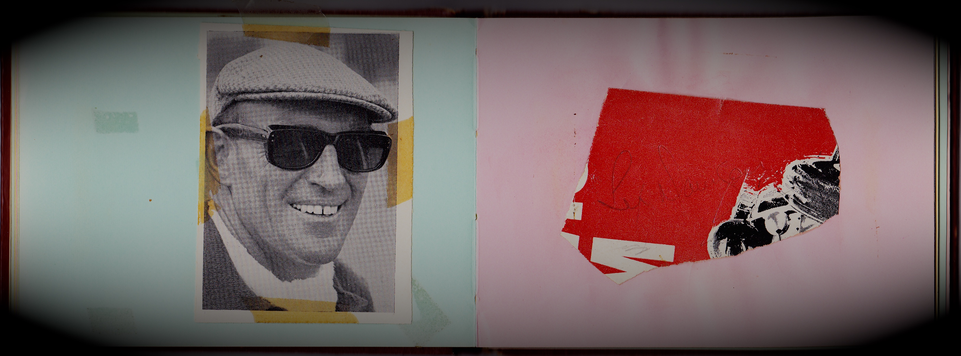 I stand and watch, shaking with excitement. Time stands still – probably for two hours, maybe more. I’m watching Jim as he chats to friends, talks to Ray Parsons, looks at the car from every angle imaginable. I even see him helping Ray with a wheel change. He sits down on a canvas chair, laughing with Ray. I summon the courage to move. I hunt for my book, searching for the right page. I fumble for my red Biro – my one and only pen. “Excuse me Mr Clark,” – my Mum had been emphatic about calling him Mr Clark should I ever meet him face-to-face – “would you please sign your book?” “Of course.Thanks for reading it. Did you enjoy it?” “Very much,” I stammer. “I bought it last year and read it right through!” Then suddenly my Dad, who also shares a love of flying with Geoff Sykes, is standing with me, hand on my shoulder. He’s working today as a start-line judge. He thinks it’s probably time for me to cross the track and join my brother in the spectator area down at Creek Corner. Even as engines burst into life and drivers begin to fidget by their cars, I walk slowly towards the paddock exit. In the marshalling area I see Jim, now in blue Dunlop overalls, preparing to pull on his helmet and climb into the Lotus. The dark blue helmet. The famous dark blue helmet with the white peak.