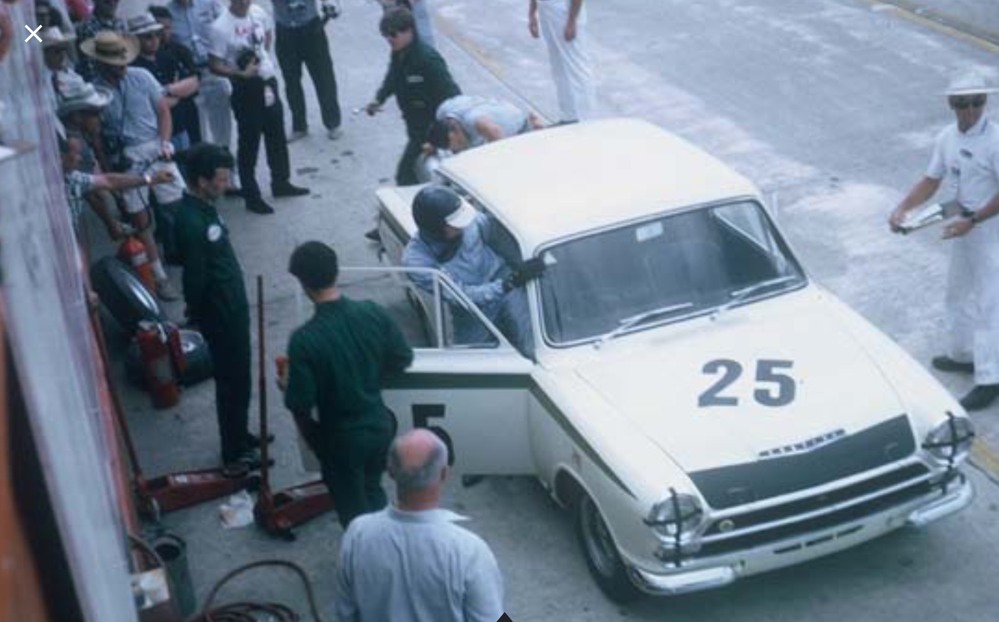 Contemporary writers made no mention of the irony – of the world’s Number One driver flying all the way to Florida merely to race a saloon car in the pre-game show – but today it has to be seen in the context of a Lewis Hamilton flying to Brazil to do a stock car race with his mate Rubens Barrichello. Or not. Anyway, fifty years ago, Jim raced one factory Cortina in the (three-hour) Marlboro 250 – cigarette advertising was on the rise – and his friend, Jack Sears, the other. Bob Dance, who had just turned 30, was on hand in support, as was Ray Parsons, Jim’s team-mate in the same race the year before.
