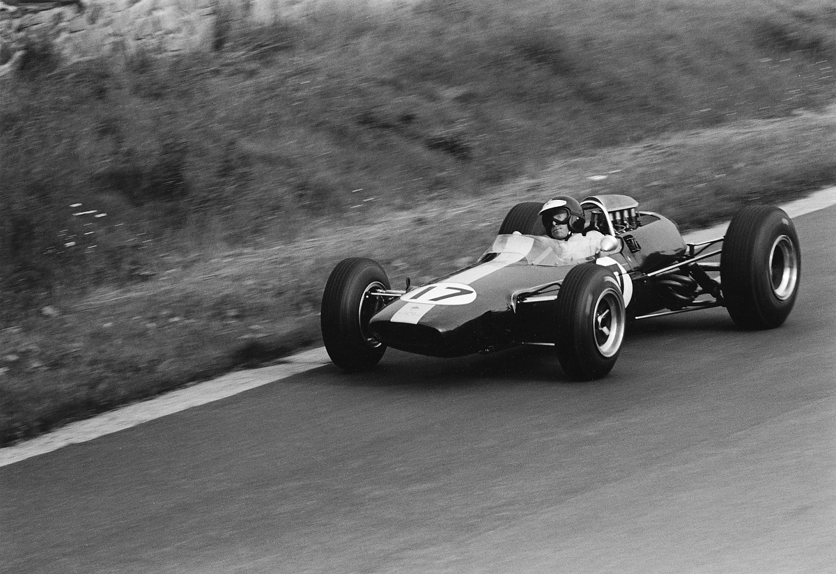 In an eerie re-run of Silverstone, his Cosworth engine suddenly lost its edge with but two laps of the race to go. Graham Hill, in John Coombs’ Brabham-BRM, was catching him quickly. Colin Chapman jumped from the pit wall in disbelief. In the cockpit, Jim again nursed the engine, winding down the revs and saving it on downshifts. More than ever, he focused on massaging the dynamic weights, eliminating the lumps.