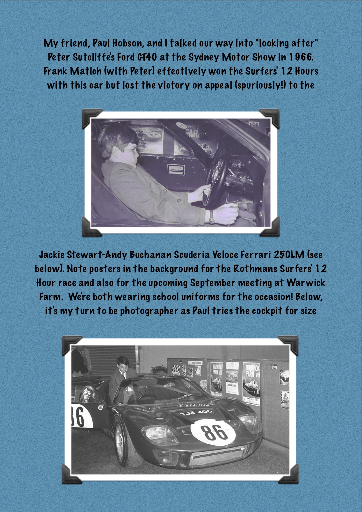 Thanks Ted. That GT40 only raced once in Australia – at Surfers’ in ’66. I did get to see a couple of GT40s racing at Silverstone in ’67 but otherwise, like you, I just had to read about them in magazines like your Motor Manual, Modern Motor and Sports Car World.