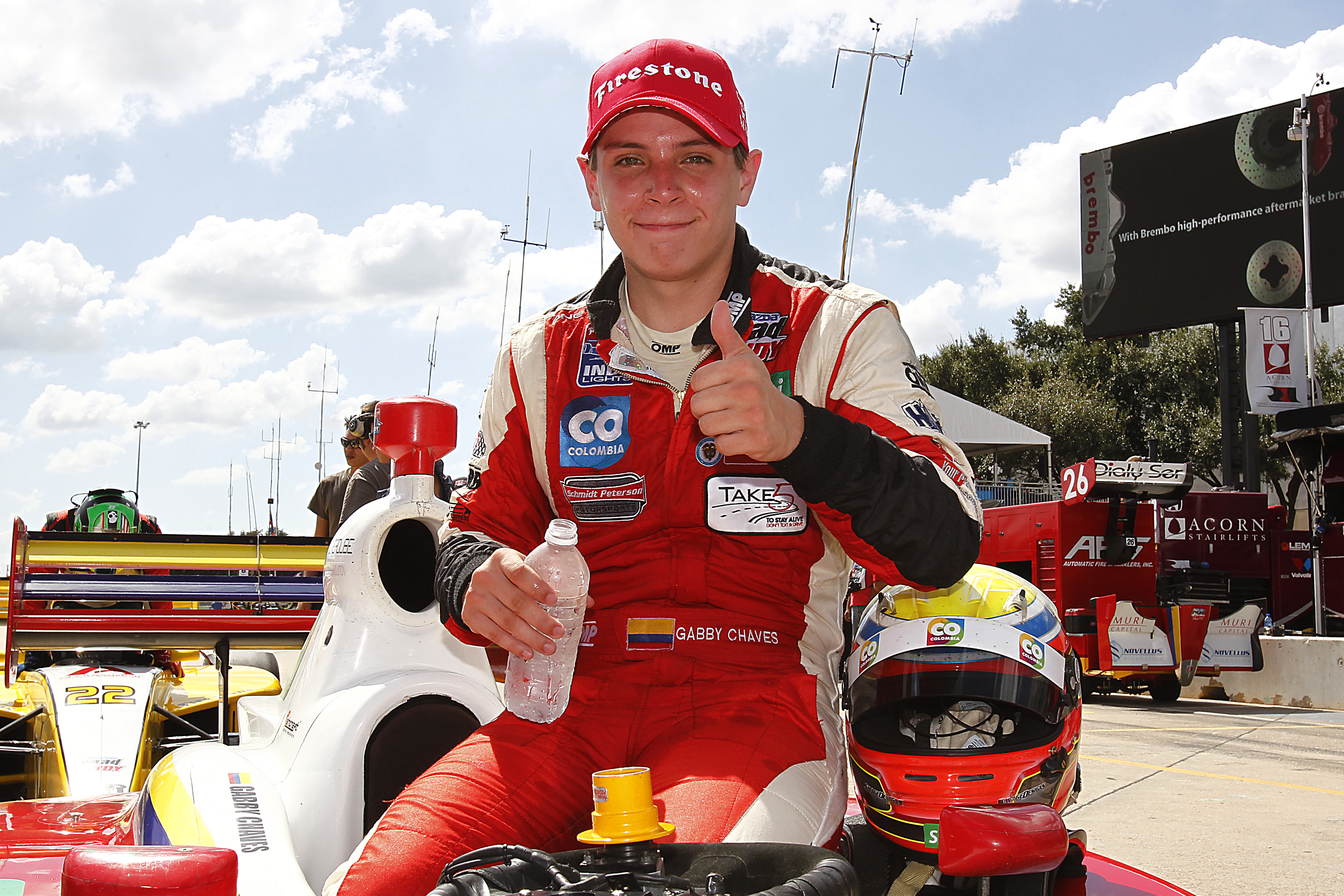 2013 Indy Lights HoustonAll racing drivers work hard – some harder than others.  Gabby Chaves was only 15 when he started to win Formula BMW races and from there the only way was up. Thing was, he didn’t have the funding for really competitive drives in really competitive categories.  He raced in Italian F3 (where he was Rookie of the Year); but he struggled in GP3. Yet another karting prodigy looked as though he was about to fade away.