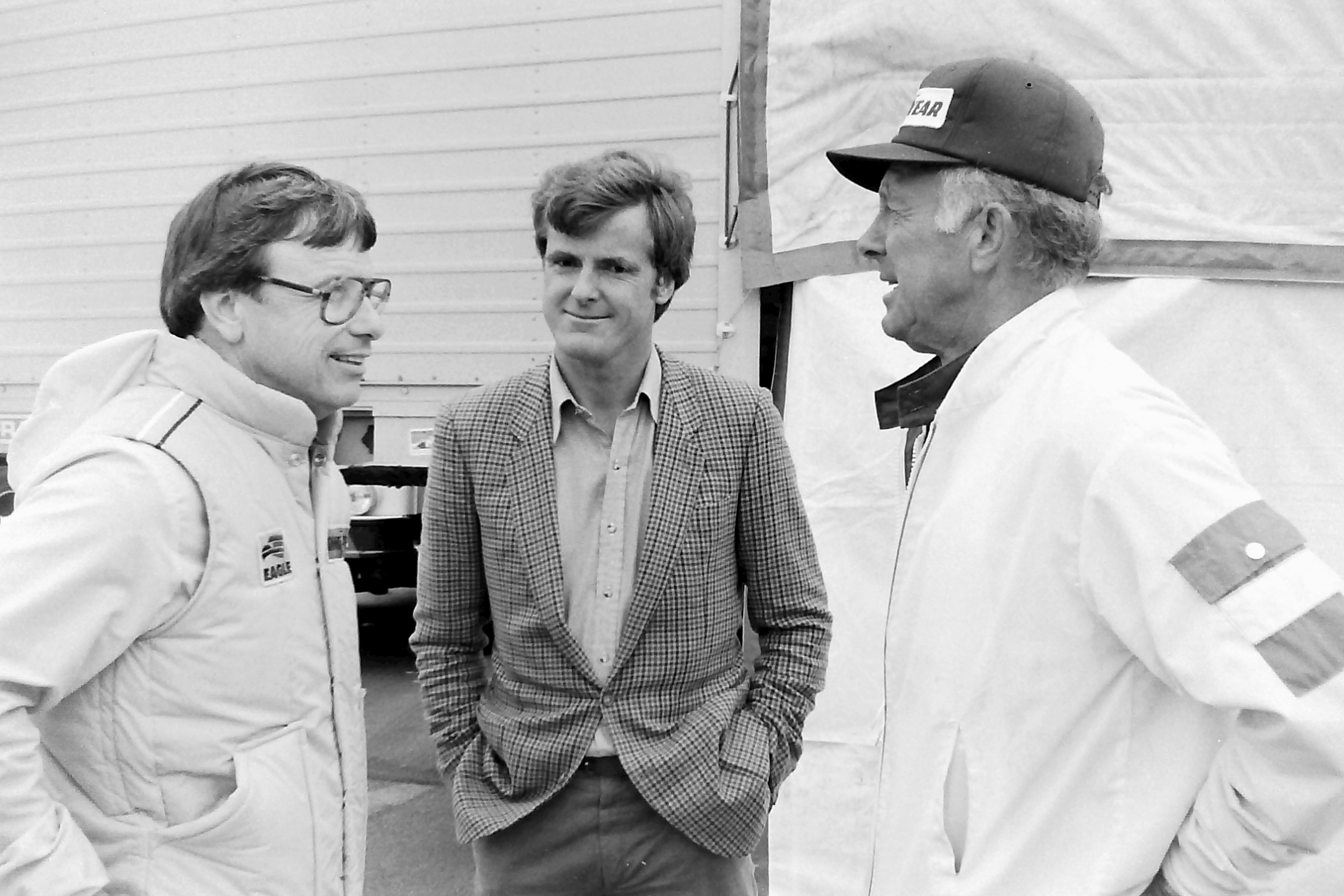 For good measure, here’s another AC shot. This time we’re taking part in the annual Grosse Pointe sailing regatta that preceded the Detroit Grand Prix every year. That’s the largely under-rated and multi-talented (F1, Indy, WRC) Chilean driver, Eliseo Salazar, on Al’s right and on his left is Dieter Stappert, who for many years wrote for the magazine with the greatest of all titles – Powerslide. Dieter was always impressive, I think: small note book in his hip pocket, nice pen, astute questions. He later worked for BMW.
