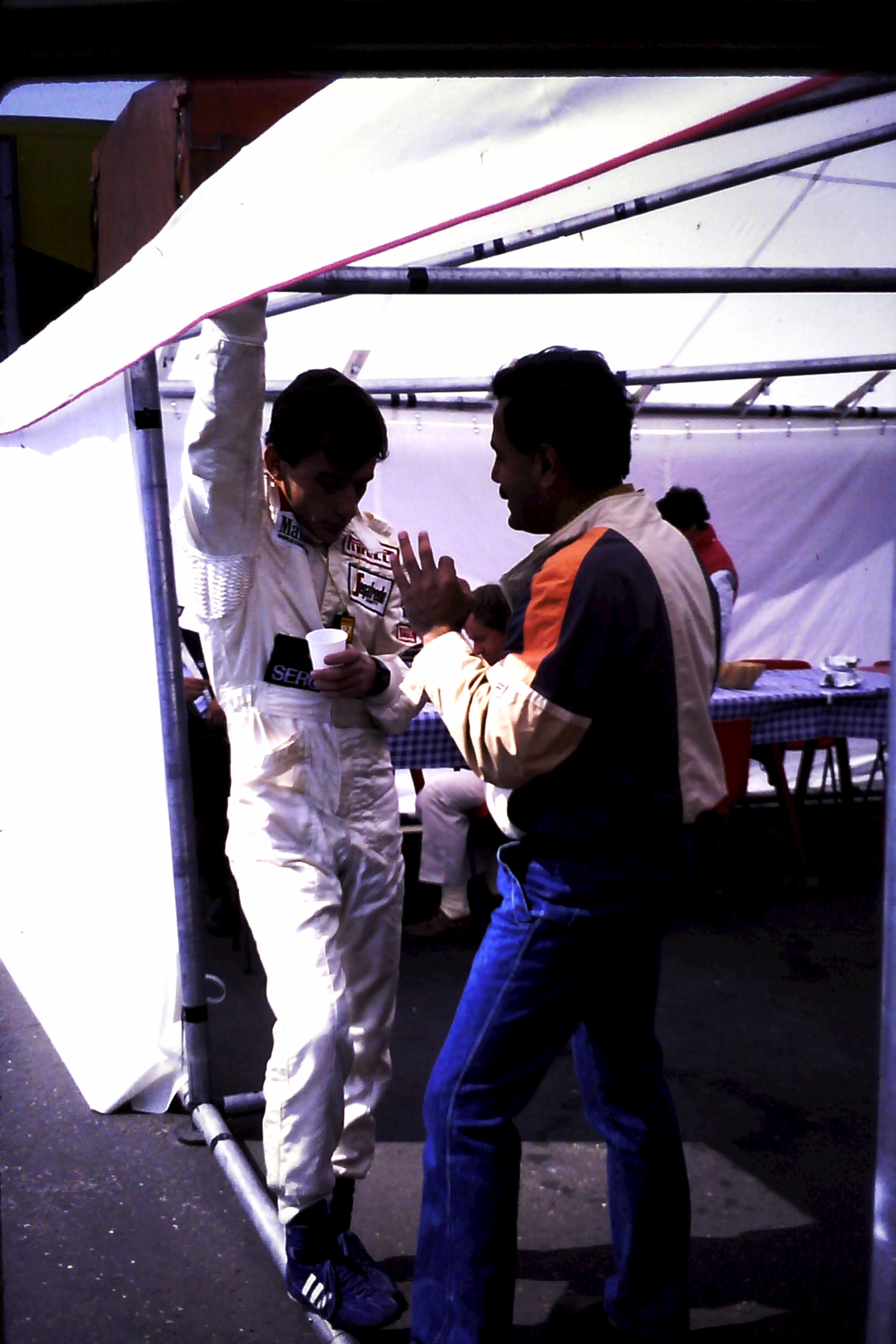 Finally, below, here’s Ayrton Senna, sipping a Segafredo coffee while he talks safety with Rafael Grajales-Robles, the very talented Panamanian heart surgeon. Rafael was a personal F1 doctor to drivers like Emerson Fittipaldi, Carlos Reutemann and Nelson Piquet long before Syd Watkins arrived on the scene and was the first medic of importance to ensure that helicopters were in place before practice sessions began, or that marshals’ posts were properly equipped with medical equipment at regular intervals. As such, he wasn ‘t flavour-of-the-month amongst the F1 power brokers for very long, as you can imagine. As the politics of the 1980s grew in intensity, Rafael – and his stringent safety demands – were inevitably shuffled sideways. He nonetheless remained close to drivers like Ayrton, and Nigel Mansell, for several years thereafter.