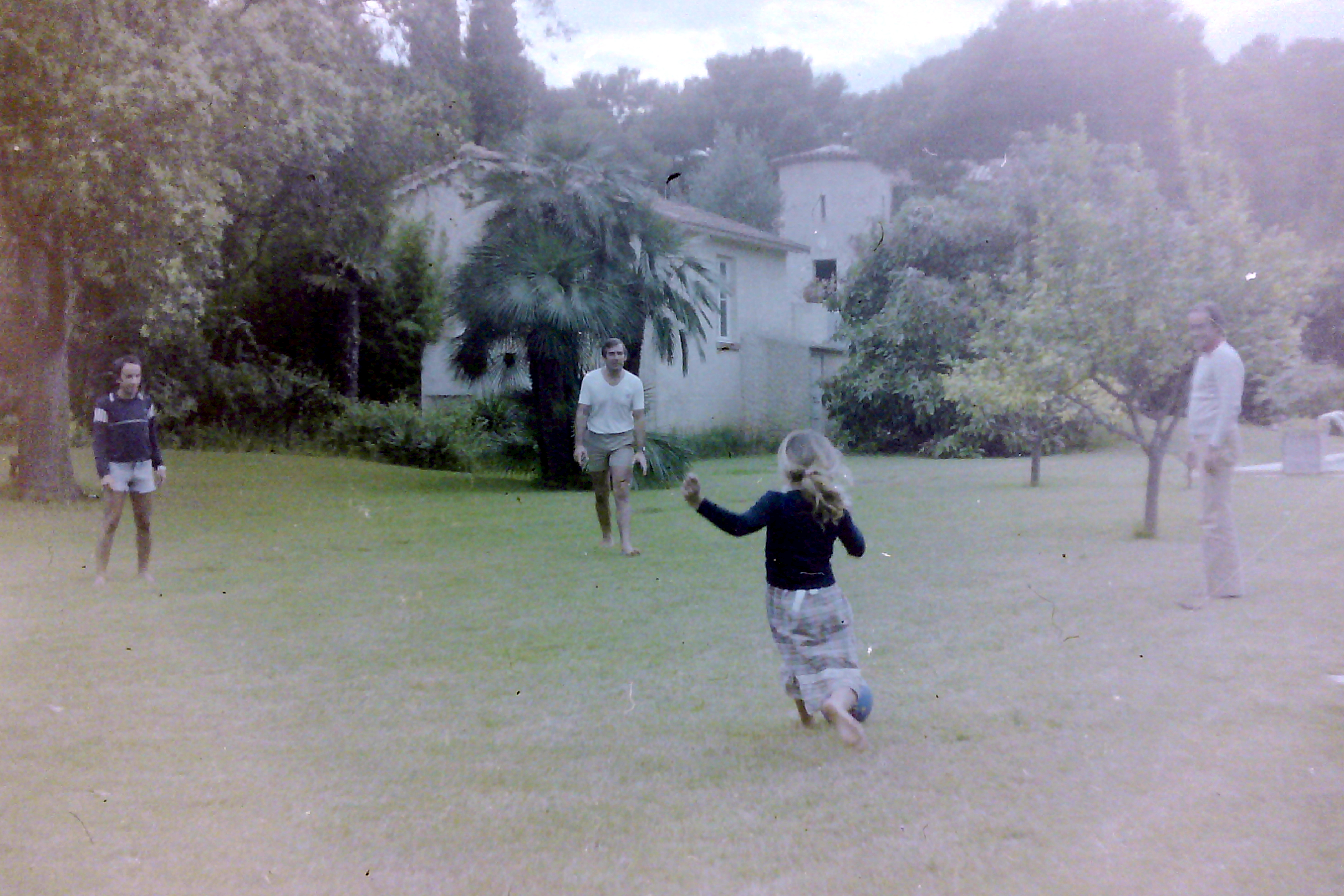 and, below, on the Reutemann family and friends, seen here enjoying an early-evening game of soccer in the back yard of Carlos’ home on the Circuit Cap Ferrat, South of France. That’s Cora Reutemann, who would in time become a first-rate photographer, looking as though she’s about to score a goal. Jose-Maria Candiotti, one of Carlos’ mates – and tennis doubles partner – from Carlos’ home town of Santa Fe, is on the right. I used to stay at Carlos’ place before the Monaco GP – and sometimes before the French GP, too.