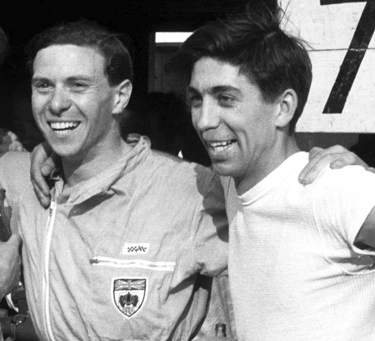 And so, maintaining that lead, Jim Clark crossed the line, acknowledging Toto Roche’s chequered flag with a raised left arm. In the grandstands, umbrellas dominated the visage. On the rev-counter of Jim’s 25, the tell-tale needle sat resolutely at 9,600rpm. On the work bench later, back in Coventry, Jim’s engine was found to have two broken valve springs. Trevor (who for this high-speed race, like Jim, raced without a peak on his helmet) might well have finished second had the crown-wheel-and-pinion not failed. As it was, Graham Hill’s second place was subsequently disallowed due to that push start (subsequently, as in “by the time they got to Monza”.) Tony Maggs therefore finished an excellent second for Cooper, catching and passing Hill in the closing stages when the monocoque BRM ran into both clutch and brake issues. Jack took Graham’s third place, with Dan finishing fourth.
