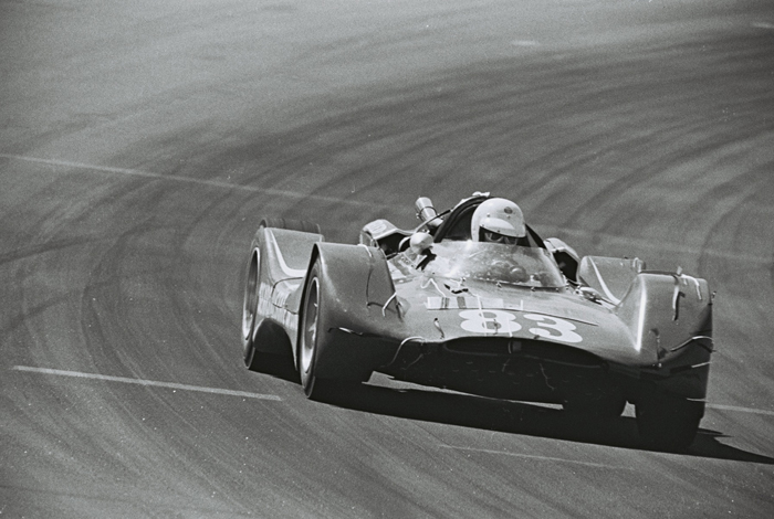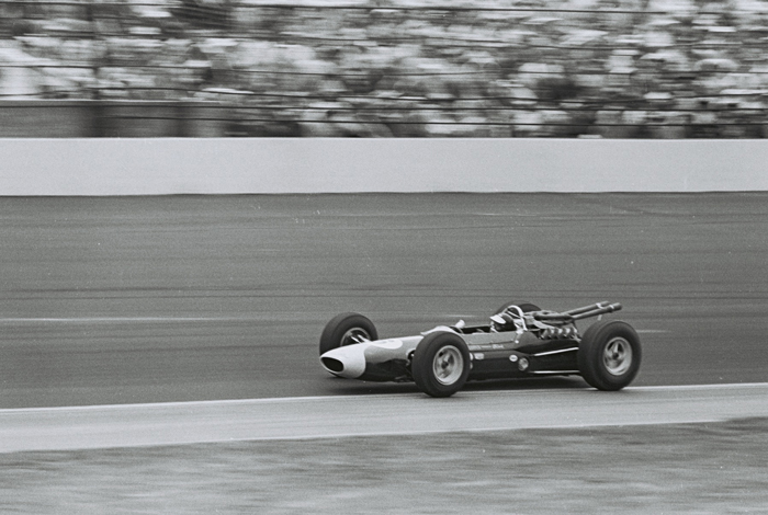 Jim finally gets to run and is immediately up to speed, matching Parnelli Jones’ 155 mph laps with apparent ease. He’s also wearing a new Bell helmet with the peak painted in dark blue rather than the regular Border Reivers white. He would race with this peak at Mallory, Crystal and Zandvoort (but not at Monaco, where he raced peakless) before reverting to a white peak for the Indy 500 on May 30