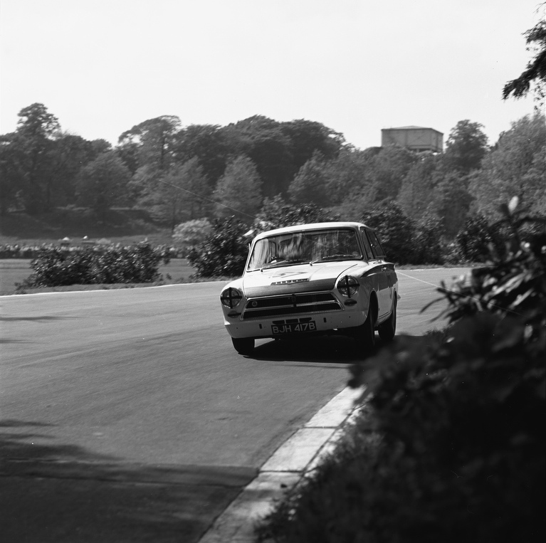Jim made up for that disappointment by again having a ball with the Ford Lotus Cortina. He won his class at Crystal and is shown here in characteristic, early-1964 understeer pose