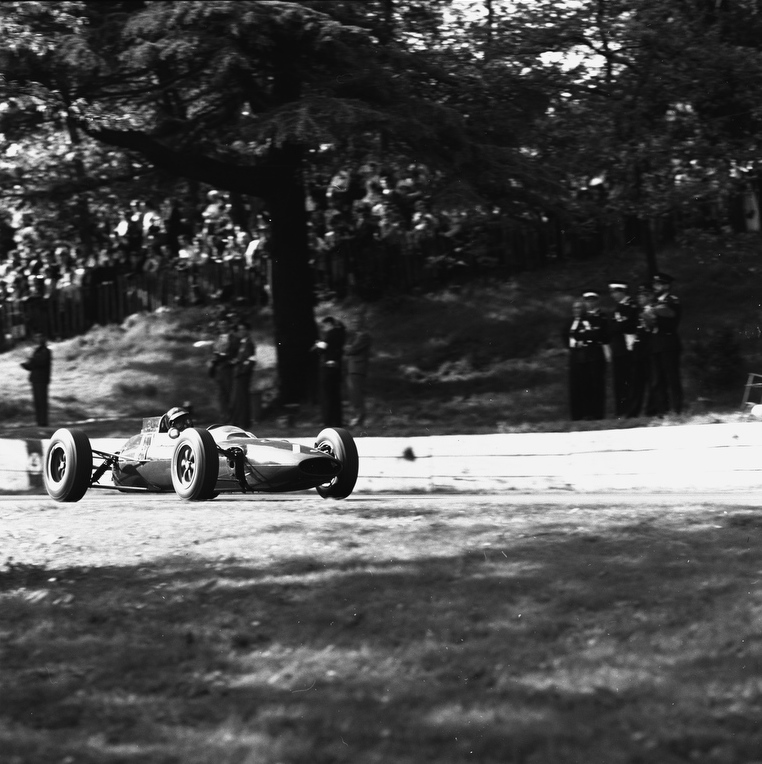 Jim and Dan missed Friday practice at Monaco but in the case of the World Champion it made little difference. He qualified on the pole and was leading easily when his Monaco nemesis again intervened. First, the right rear roll-bar mounting broke on the Lotus 25. Jim called in quickly to have the complete bar removed – and still could have won but for an engine failure later in the race. His adaptation to the 25’s handling problem was remarkable