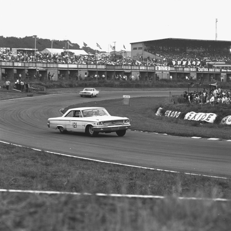 It’s hard to picture it, now – Jim, Graham, Trevor, Tony Maggs, Lorenzo and Innes all rushing back to England to race their widely-different cars at this Brands International.  Jim wasn’t even in the big race!  Instead, he could relax down at the lower end of the paddock with Alan Brown and the mechanics, settle himself into the Galaxie’s spacious, padded “bucket” seat and apply some of the intel he’d been given by Dan. The left-hand-drive Galaxie had a “four-speed, on-the-floor (L-shaped) shifter”, a lap seat belt only, a deeply-dished plastic steering wheel and a lateral (ie, not longitudinally-braced) roll-bar.  Driving it was all about taming the power – ie, minimising the wheelspin and the oversteer….and allowing for brake fade.20787