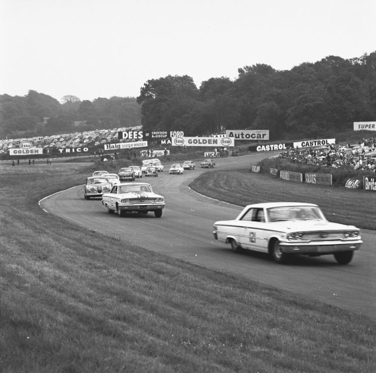 As it happened, Jim qualified second to Jack but seized the lead into Paddock Bend:  Jack’s start, on the lower side of the track, had suffered from the usual Brands Hatch wheelspin. Jim held the inside line up the hill into Druids, won the mid-corner barging match at the hairpin and headed the field into Bottom Bend, his right rear Firestone picking up the dirt as he power-slid the big Galaxie onto Bottom Straight. 20747Jack Sears had won on all types of circuit (from Silverstone to Crystal Palace) with the Willment Galaxie and was not about to fall away; it was Jim Clark, though, who emerged from the back of the circuit still in the lead.  One can hear the voice of Anthony Marsh now, as the lumbering V8s teetered into  Clearways: