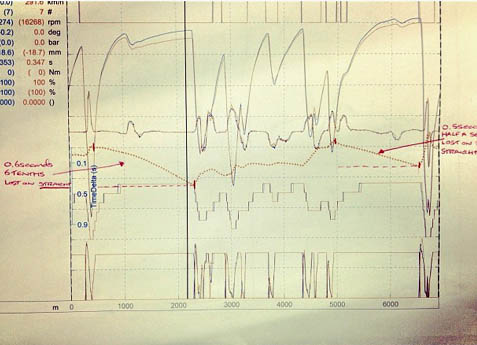Lewis Hamilton posted this interesting telemetry overlay after qualifying, comparing his lap with that of Jenson Button. The annotations speak for themselves – although they should of course be seen in the context of a first-class F1 team opting for two different aerodynamic solutions to a very demanding lap