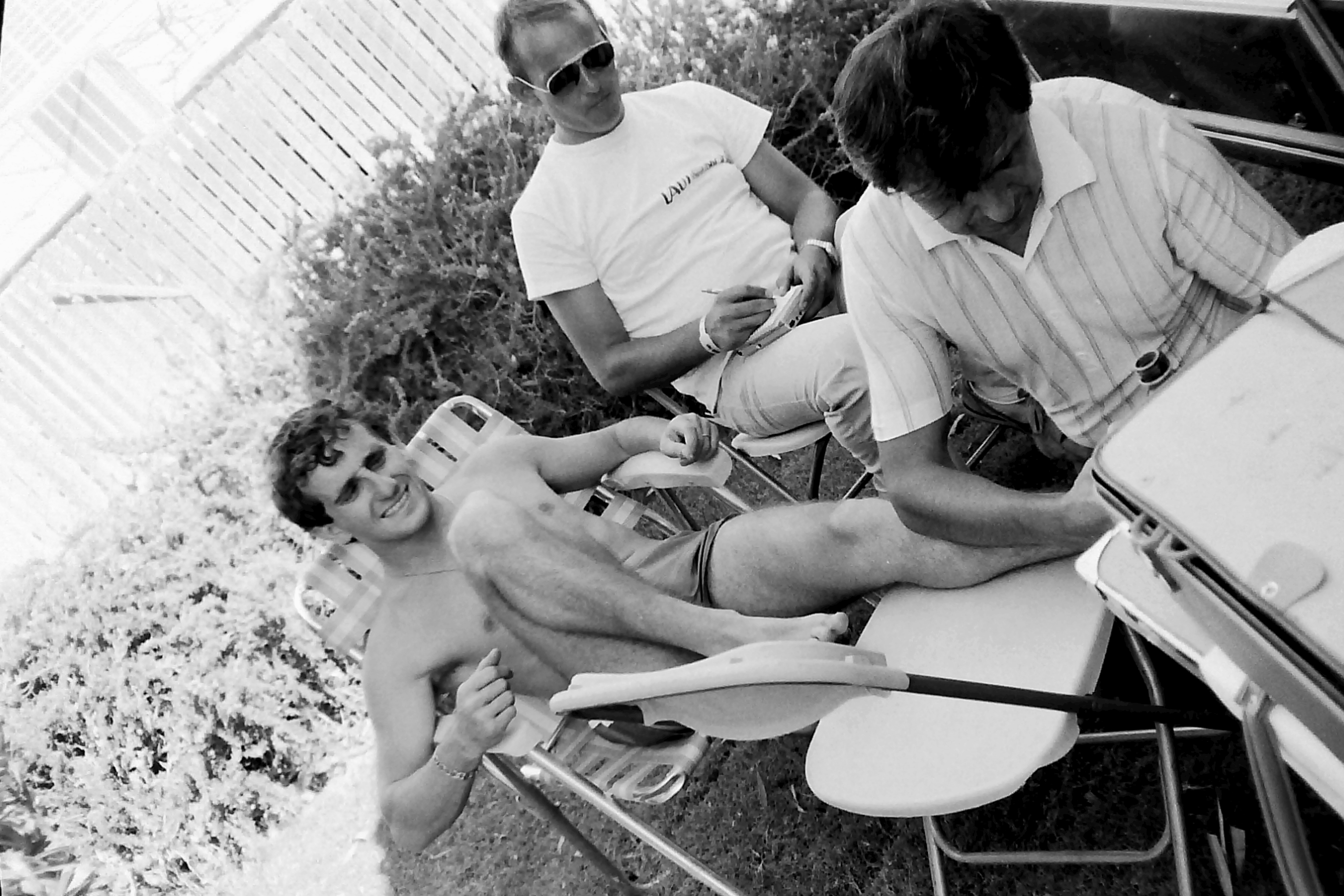 Jimbo Foley, ace cameraman, is shuffling his feet beside his huge hyrdraulic hoist. “It won’t work,” he says, shading his eyes against the early-morning sun. “No idea why. I’ll just have to wait,” he adds with a sparkle.